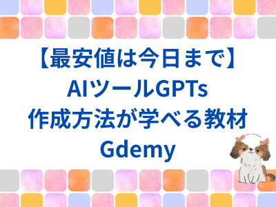 こんにちは、 ブログが大好きな花です! 本日のメルマガは 「今日まで」の お知らせが2つあります。 ・Gdemyの最安値は「今日まで!」 ・無料でAIツールがもらえるキャンペーンの締め切りは「今日まで」 どちらも「今日まで」なので 後回しにしないように 注意してくださいね。 ※いつも「見落としてた」という方がいるので 「今日まで」をメチャ強調しています^^ それでは、 順番にお伝えしますね。 ----------------- ◆Gdemyが値上げします ----------------- オリジナルAIツール(GPTs) の作成方法が学べる教材 「Gdemy(ジーデミー)」 が最安値で購入できるのは 【本日、11月20日(木)23:59まで】です! 明日、11月21日(金)から値上げします! 昨日は、 メルマガで最後の方に サラッとご紹介にも関わらず 2名の方に手にしていただきました。 ありがとうございます! GPTsとは、 キーワードを入れるだけで 比較表を作ってくれたりする 何かに特化したAIツールのことです。 GPTsが作れるようになると、 オリジナルのAIツールを作ることができますよ。 という私自身も、 ブログやメルマガのことはもちろん、 ちょっとした日々の悩みまで、 毎日のように 「お悩み相談あいこさんGPTs」に 悩みを解決してもらっています。 このGPTsは私が作ったもので、 いまはワントップの特典としてお付けしています♪ こうやって、 今は、自分で作ったGPTsを ・何かの教材の特典につけたり ・GPTs自体を販売して 報酬UPにつなげている方も たくさんいます。 Gdemyは GPTsの作成を学べる教材ですが、 販売者のヒデローさんが作った ブログに役立つGPTsが使えるのも 嬉しいポイント♪ そして、 今回の値上げのタイミングで 8つのGPTsが追加されるそう! 中でも、私が「これはよいな」と思ったのがこちら↓ ●タイトルから記事構成を自動生成するGPTs タイトルを入れるだけで、 検索意図を推定し、 Googleの検索結果に上がりやすい 記事構成を考えてくれるんですって。 記事を読みに来た人の 検索意図を意識することってすごく大事です。 これを外すと 記事に貼った広告が クリックされないどころか 読まれない記事になってしまいます。 他にも ・記事に合う楽天商品を探してくれるGPTs ・売れやすいキーワードを生成するGPTs ・入力した文章の誤りを最小限の範囲で丁寧に校正してくれるGPTs ・音声入力の文章を、自然な書き言葉に整えてくれるGPTs など、 上でご紹介したもの以外にも、 いくつか便利なGPTsがあります。 実際の動きは、以下から 動画でひとつひとつ確認できるので、 「どんなふうに使えるのかな?」 と気になっている方は、 ぜひチェックしてみてくださいね。 ↓↓ https://hanamama-mail.com/l/u/Dt1L6NAeDE7Qs67T ※Googleドキュメントに移動します。 これからの時代、 AIを使いこなせる人と、 そうでない人とでは 生活やブログやメルマガにも 大きな差が開いていくと感じています。 私自身 「チャンスは逃したくない!」と思って、 Gdemyが販売されたときにすぐ購入しました。 そしてGPTsを作り始めてからは、 ちょっとした生活のお悩み解決はもちろん、 ブログ作業の時短はもちろん、 メルマガの報酬アップにもつなげています♪ ここからは、 先にGdemyを手にした方から 嬉しい感想をいただいているので 一部ご紹介しますね。 ここから↓ -------------------------- 学習カリキュラムが論理的で しっかり体系立てて説明してくれるので インプットしやすかったです。 マニュアル内で迷子になってしまう心配はなさそう。 (迷子にしてくるマニュアルはけっこう多い) 初心者に必要そうな プロンプトが開示されているので 真似して自分でも作成できる。 このマニュアル自体がツールとして活躍してくれそうです。 ( Yさん) -------------------------- プロンプトが見れるのはすごっく勉強になりますね! それにセキュリティ対策が必要なのは知らなかったです。 (Aさん) -------------------------- GPTsの基本的な作り方が分かったので、 いくつか作ってみて自分専用のGPTsを開発し、 これが本当に良いものであれば コンテンツを作った時に特典として配りたいと思っています。 (Dさん) -------------------------- ※全て掲載許可をいただいています。 実は今、 洋服選び専用のGPTsを作ろうかな〜 と考えているんです。 身長が150cmない私は いつも洋服選びに苦戦してるので…。 毎回サイズを入力するのも面倒なので、 「ピッタリなTシャツ探して!」と入力したら、 私に合うサイズのものを 自動で提案してくれるような 「マイサイズGPTs」があったらすごく便利だな~って。 ※さすがにこれは特典にお付けできませんが(笑) こうやって 生活の小さな悩みから ブログ作業の時短まで、 毎日のように GPTsに助けてもらっています^^ 最安値は 本日、11月20日(木)23時59分まで! 気になる方は、 お早めにチェックしてくださいね。 花の特典付き Gdemyの詳細はこちら ↓↓PR https://hanamama-mail.com/l/u/xTUoa6VIyjMCYtMj もし、ご購入前に 何か気になる事があれば ささいなことでも構いませんので お気軽にご連絡下さいね。 本日、夕方